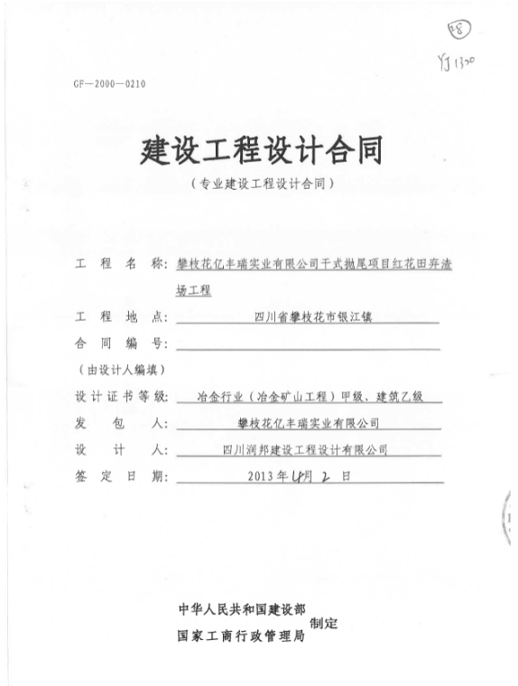 攀枝花億豐瑞實(shí)業(yè)有限公司干式拋尾項(xiàng)目紅花田棄渣場工程