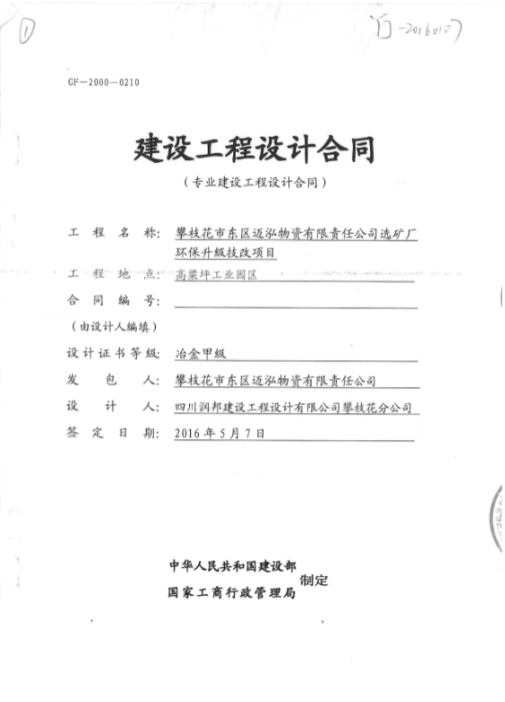 攀枝花市東區(qū)邁鴻物資有限責(zé)任公司選礦廠環(huán)保升級技改項(xiàng)目