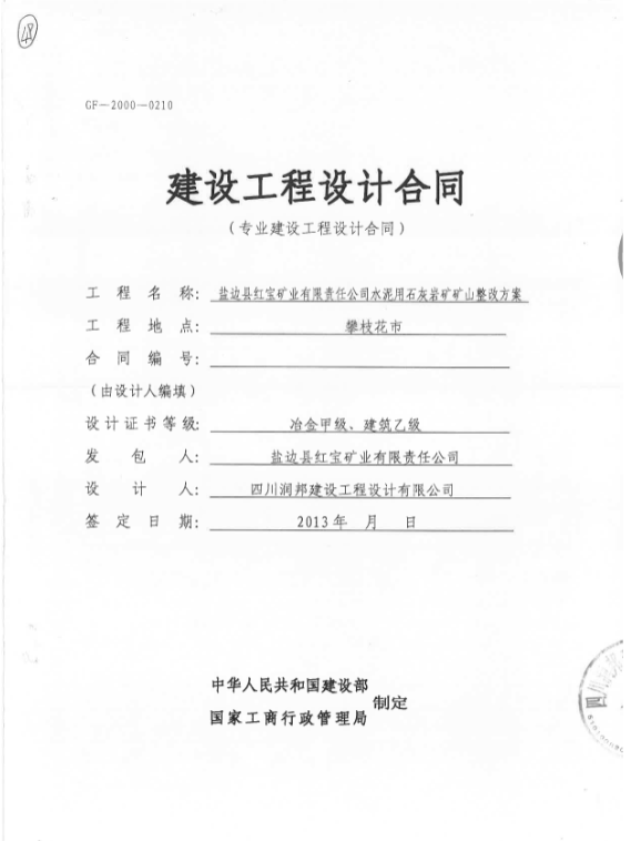 鹽邊縣紅寶礦業(yè)有限責(zé)任公司水泥用石灰?guī)r礦礦山整改方案