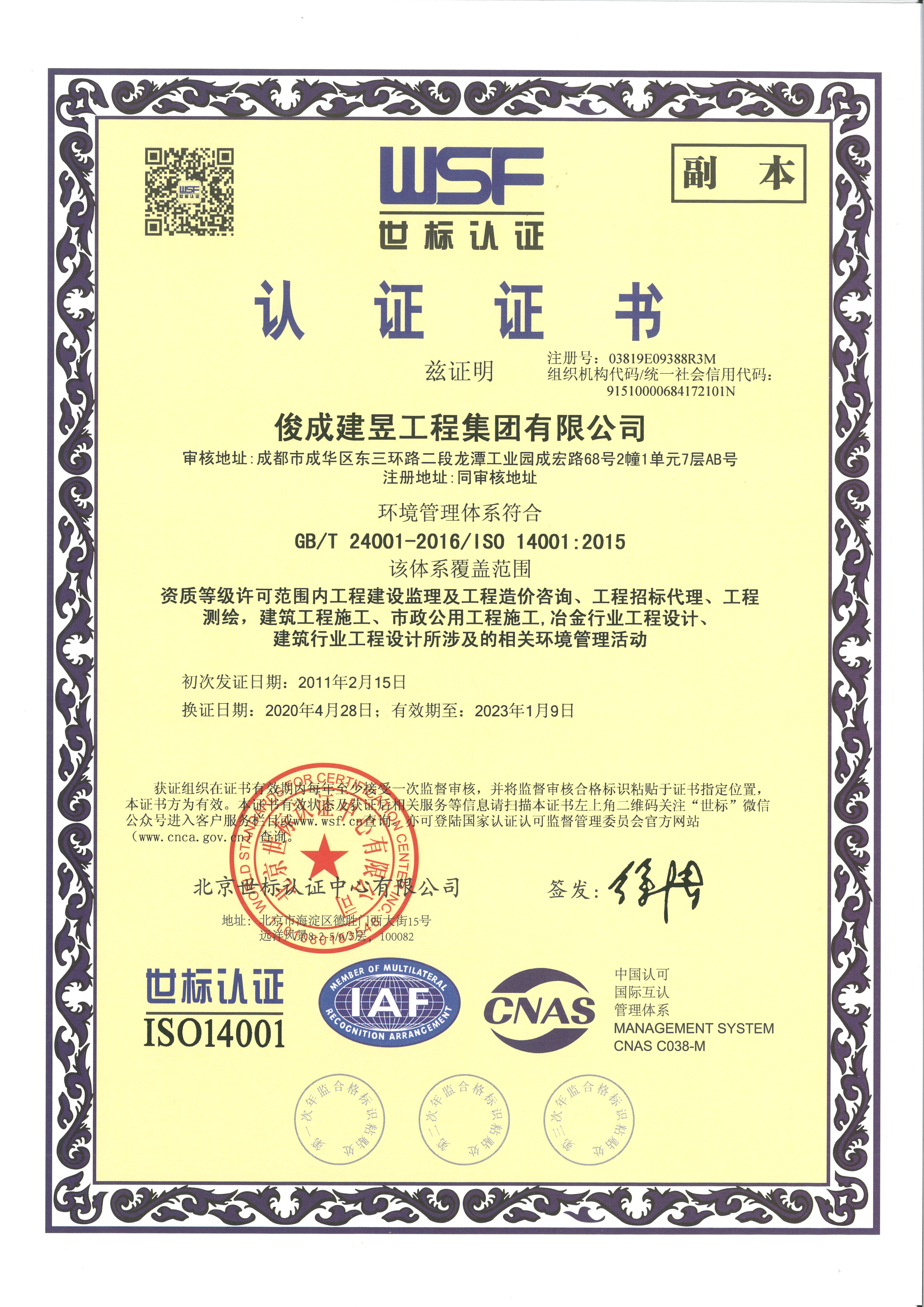 12月1日至2日,北京世標認證中心審核專家組一行四人蒞臨俊成建昱工程集團有限公司,對俊成建昱工程集團有限公司進行了ISO質量、環(huán)境、職業(yè)健康安全三體系年度監(jiān)督審核??〕山殴こ碳瘓F總經理黎智、常務副總李浩成及俊成建昱工程集團相關部門主管予以全力支持與配合。